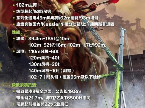 Cost Efficiency and Compatibility: A standout feature of the ZAT8000V863 is its design focus on reducing operational costs through component compatibility. The counterweights, jibs, and other lifting accessories are interchangeable with other models such as the ZAT5000H, ZAT6000H, and ZAT6500H, requiring only a change in the connecting frame. The wind power jib is also compatible with the ZAT8000H7, simplifying the setup process for various lifting scenarios. This interchangeability allows for more flexible deployment and reduces the need for additional equipment, resulting in lower operating costs.